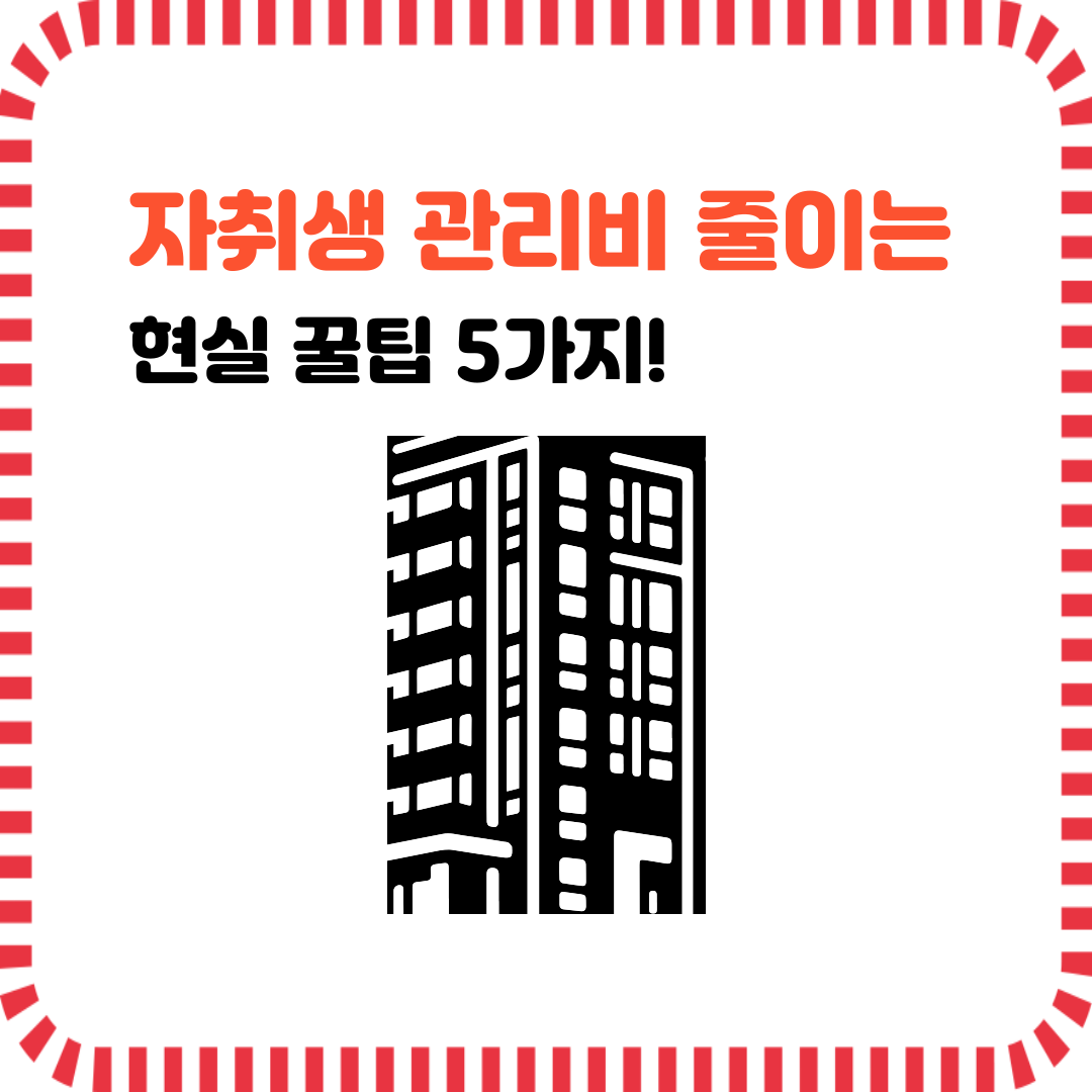 하지만 작은 습관의 변화와 구조적인 조정을 통해 자취방 관리비는 충분히 줄일 수 있습니다. 이 글에서는 1인 가구가 실천할 수 있는 관리비 절약 전략 5가지를 소개합니다.