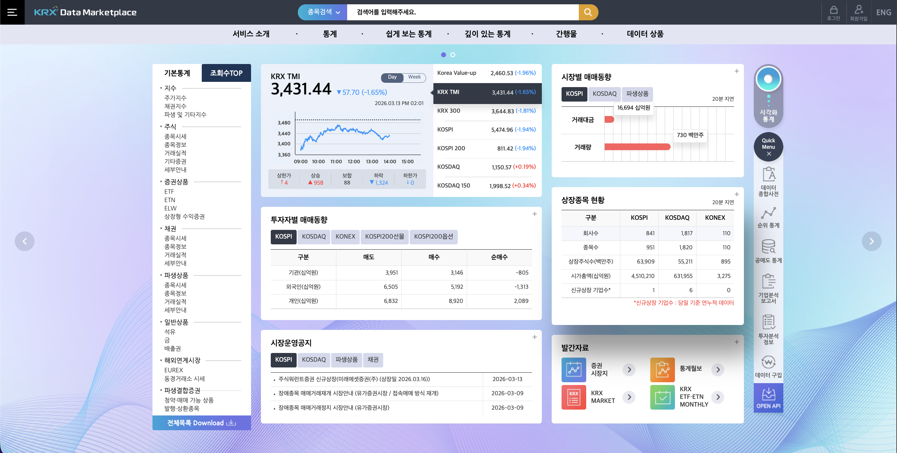 - 한국거래소 파생상품 공지 및 통계 메뉴