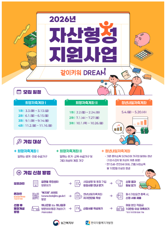 특히 희망저축계좌1과 헷갈리는 경우가 많기 때문에 대상 가구 차이와 2026년 모집일정도 함께 확인하는 것이 중요합니다.