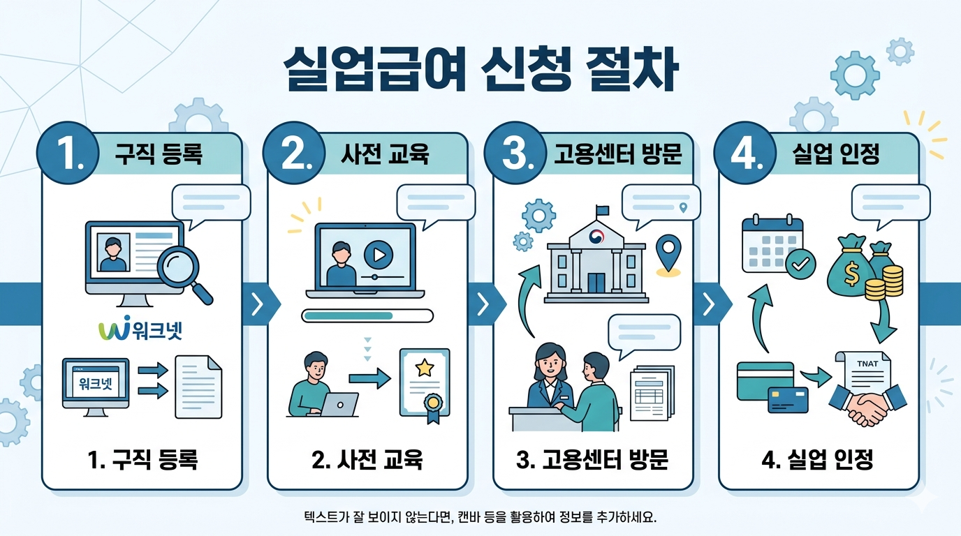 실업급여를 받기 위한 첫 단계입니다. 구직 등록과 사전 교육 후, 관할 고용센터를 방문해 수급자격 인정 신청을 해야 합니다.