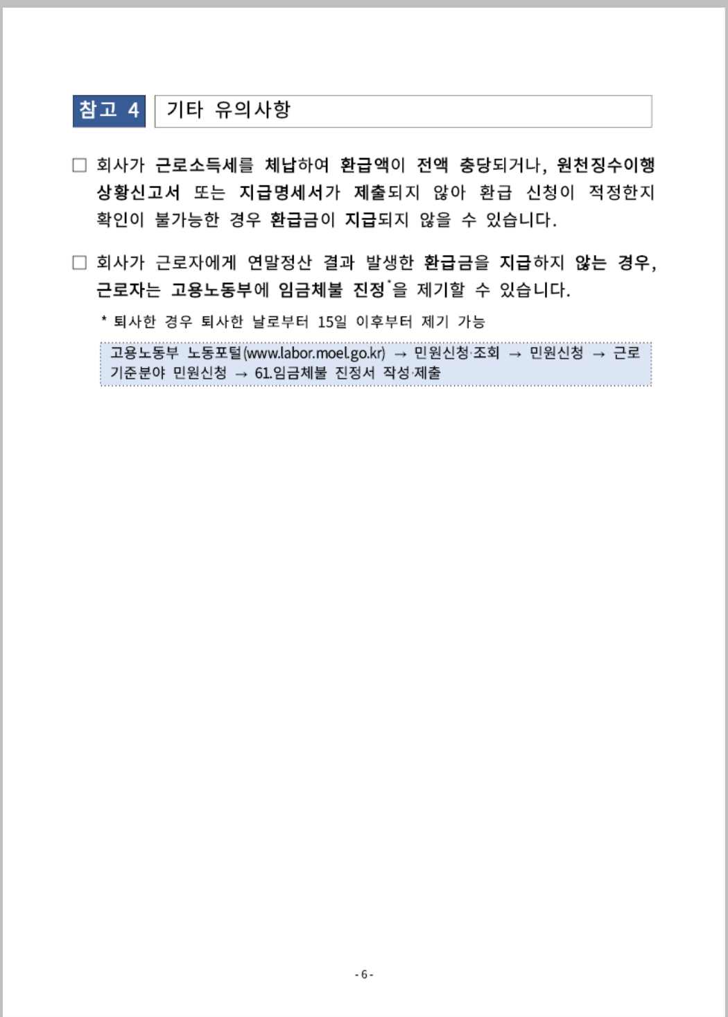 - 부도·폐업·임금체불 등 특수 상황에서는 근로자 직접 신청이 검토될 수 있습니다.